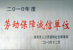 2010年度劳动保障诚信单位 |