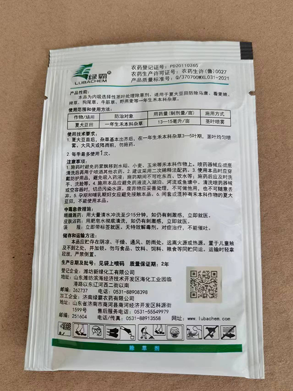 夏大豆田 一年生禾本科杂草 13-15毫升/亩 茎叶喷雾